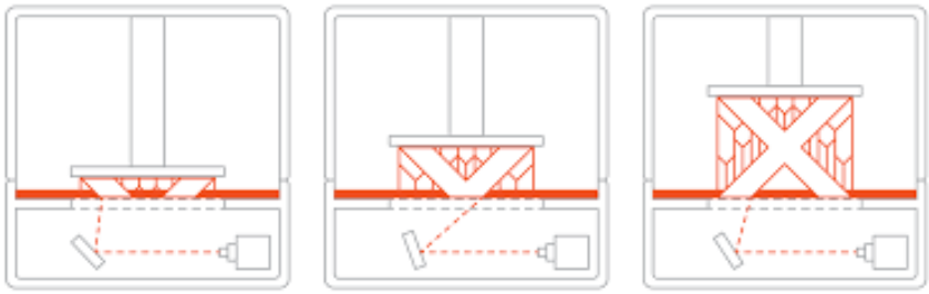 فناوری SLA بر اساس رزین های مایع حساس به نور است که می تواند با اشعه ماوراء بنفش (UV) بهبود یابد. پرینتر های سه بعدی SLA دارای پلتفرمی هستند که پس از استحکام یک لایه حرکت می کند تا فضا برای لایه جدید که به لایه بعدی خواهد چسبید، ایجاد شود. در مقایسه با پرینترهای FFF، جزئیات پرینت اشیا به طور قابل توجهی بیشتر هستند. با این حال، مدت زمان این پرینت طولانی تر بوده و حجم چاپ کوچکتر است. این نوع از پرینتر ها عموما برای صنایع جواهر سازی و دارویی مطلوب تر هستند. اشیا پرینت شده با این روش کاملاً صاف هستند، فوق العاده دقیق و لایه ها تقریباً برای چشم غیر مسلح انسان غیر قابل رویت هستند (به ویژه در مقایسه با پرینترهای FFF). بزرگترین ایراد وارد به این فناوری می تواند سطح چاپ کوچک و همچنین سمی بودن آن باشد. مصرف کننده این نوع پرینتر ها باید از تماس رزین با پوست خود و همچنین استنشاق بخار آن اکیدا جلوگیری کند.